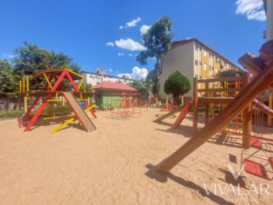 O condomínio conta com estacionamento tipo rotativo, campo de futebol de areia, dois salões de festas, pracinha com areia e portaria 24 horas.
