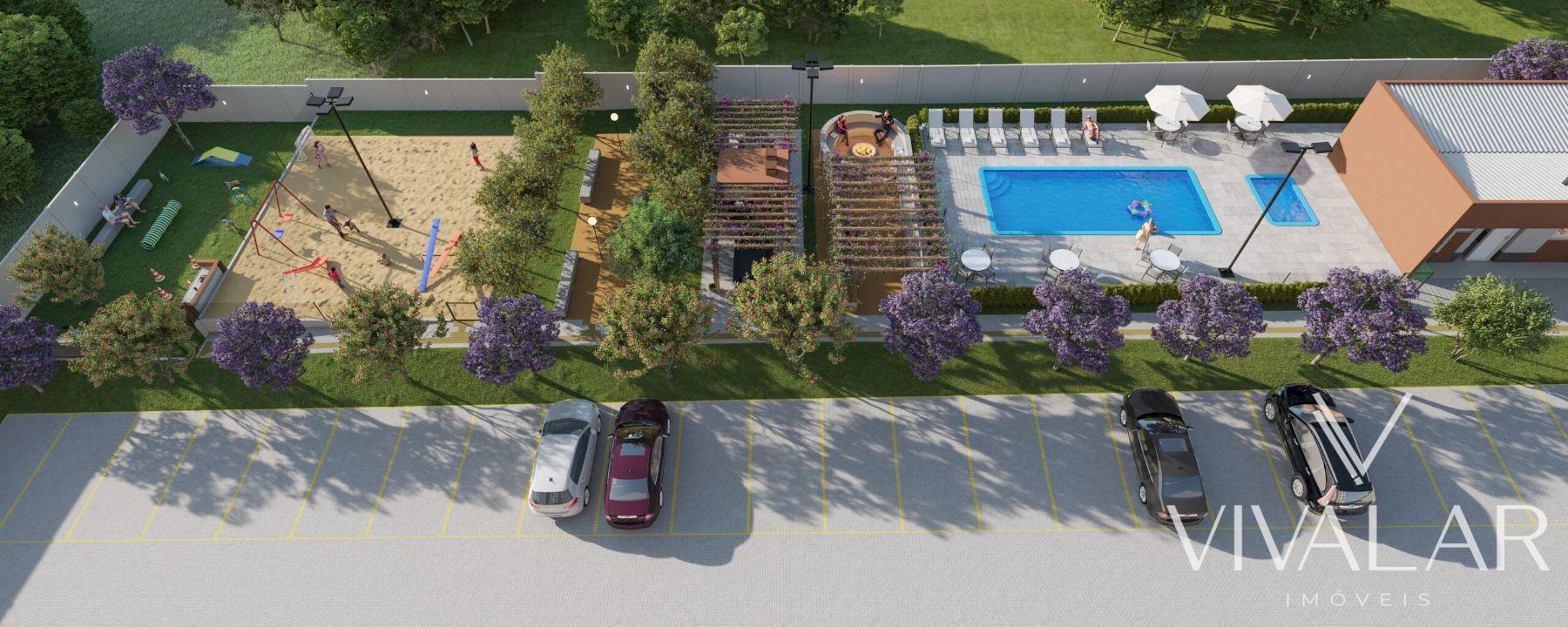 Salão de festas com churrasqueira, Playground, Piscinas adulto e infantil, Chimarródromo, Quiosque descoberto com churrasqueira, Pet Place, Fogo de chão, Pomar de bergamota;